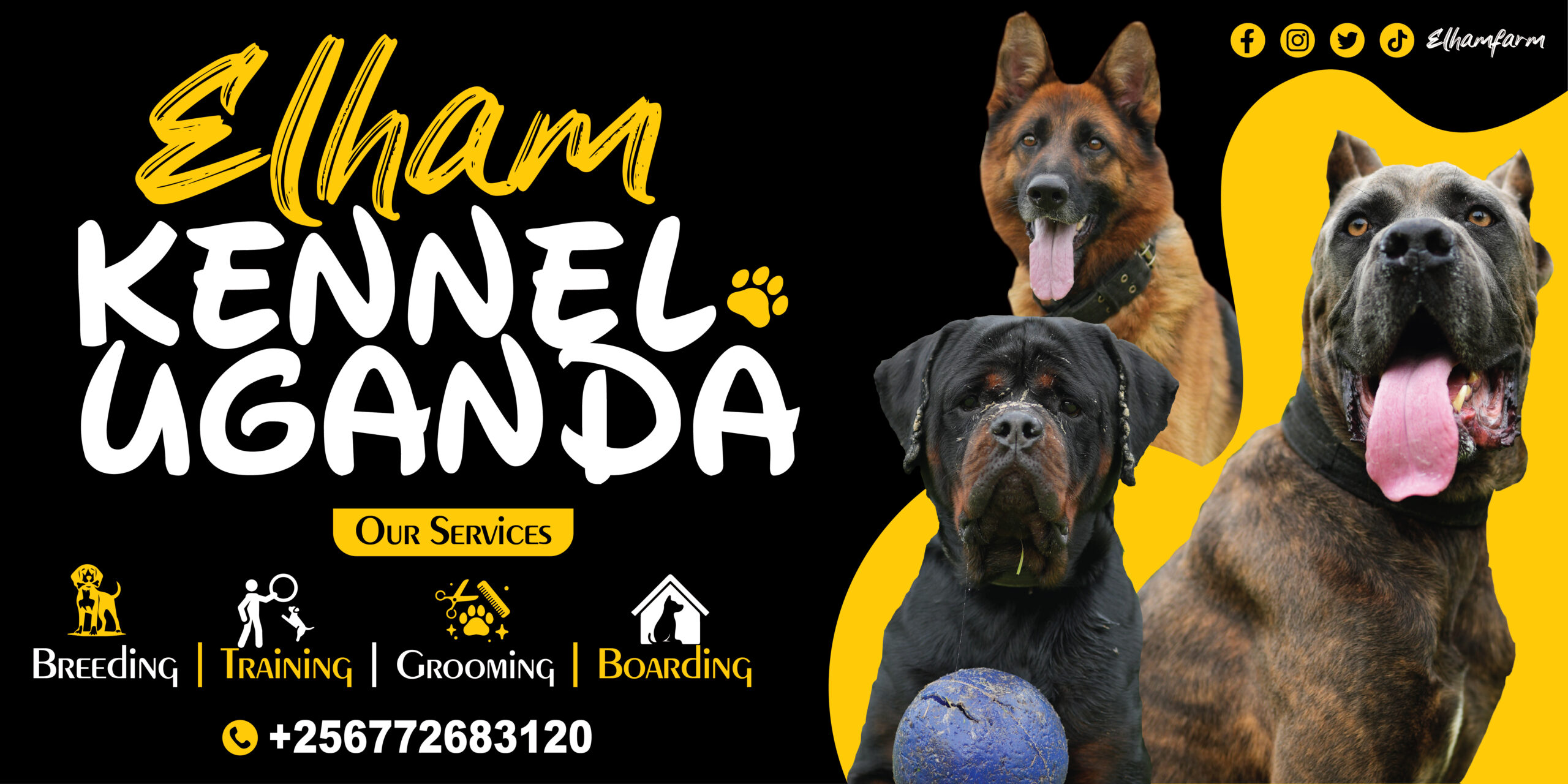 Elham kennel uganda is ranked as the best kennel in east africa. We mainly breed cane corso, rottweiler and german shepherd. We breed from the best bloodlines in the world. We do training, boarding and grooming we are located in buwooya -kalandazi -nakawuka road